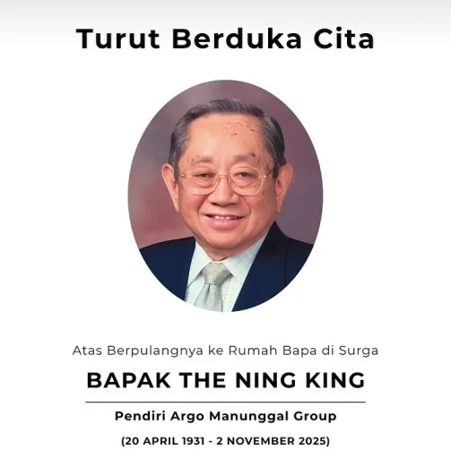 Jakarta – Indonesia kehilangan salah satu tokoh besar dunia bisnis. The Ning King, pendiri Kota Alam Sutera dan tokoh penting di balik pembangunan Garuda Wisnu Kencana (GWK) Bali, meninggal dunia di Singapura pada usia 94 tahun, Minggu (2/11/2025).
